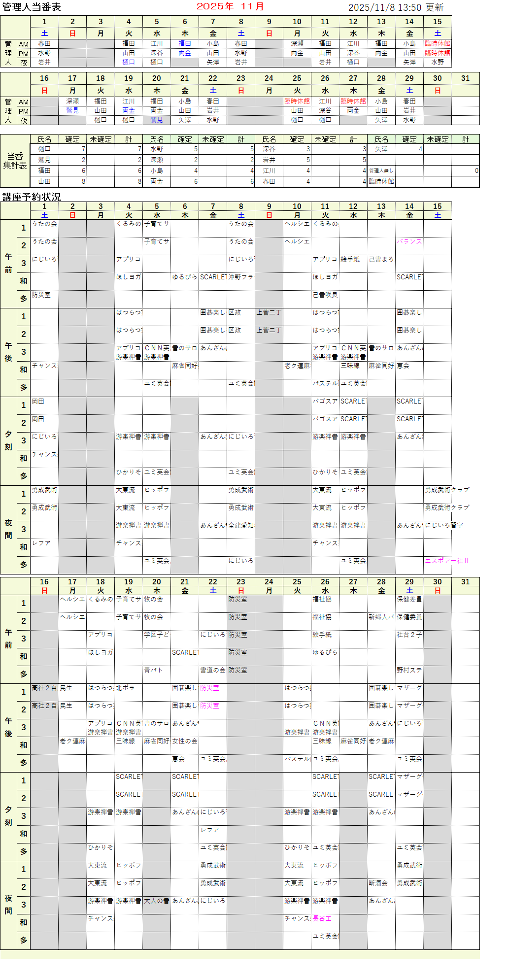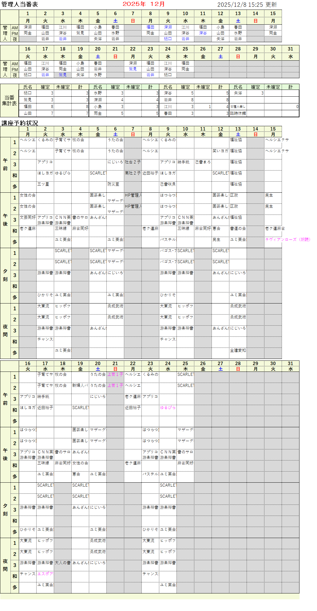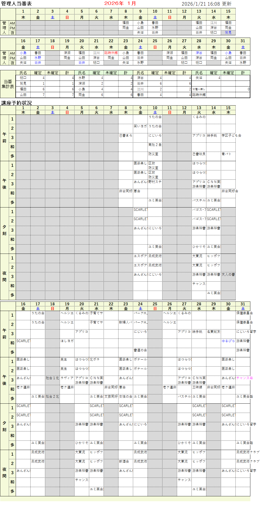 コロナの関係で、直前に当番がなくなることがあるので、注意してください。